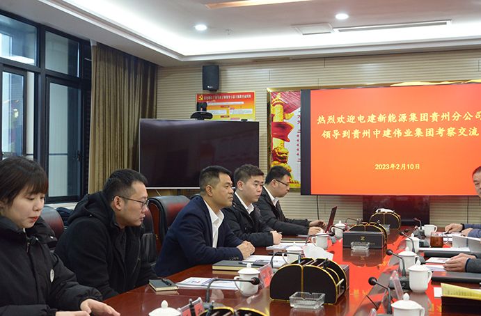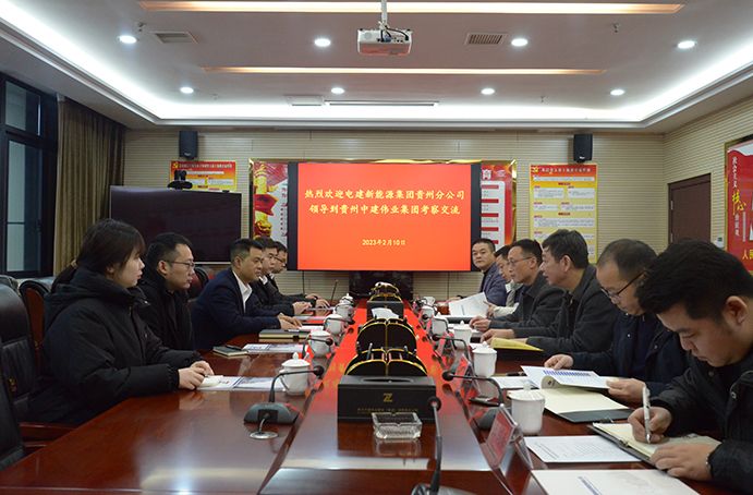 為深化黔東南州新能源資源的合作開發(fā)利用,2023年2月10日,央企中電建新能源集團貴州分公司副經(jīng)理鐘輝一行赴中建偉業(yè)集團公司考察交流,達(dá)成初步合作意向。貴州中建偉業(yè)集團公司黨委副書記、總經(jīng)理馮安翔在集團公司17樓會議室熱情接待并主持座談,黨委委員、副總經(jīng)理王引明、王振田,董事長助理張政雄、總經(jīng)理助理田應(yīng)欽、經(jīng)營部經(jīng)理王劍和參加座談。